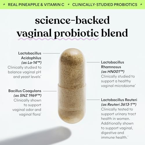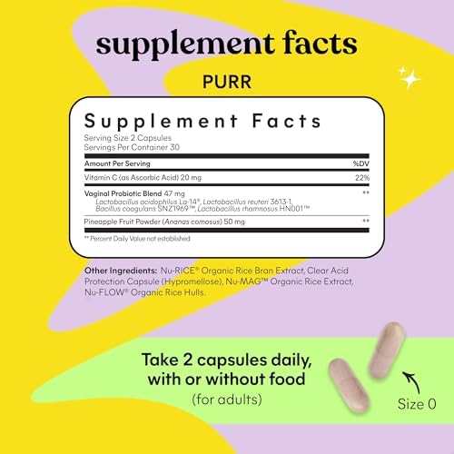 The effectiveness of Lemme Purr comes from its powerful combination of four research-backed probiotic strains: Lactobacillus acidophilus, Lactobacillus rhamnosus, Bacillus coagulans, and Lactobacillus reuteri. These specific strains have been clinically tested for their ability to support vaginal flora balance, maintain urinary tract health, and promote overall feminine wellness. The formula is enhanced with pineapple extract and Vitamin C for additional nutritional support and antioxidant protection.