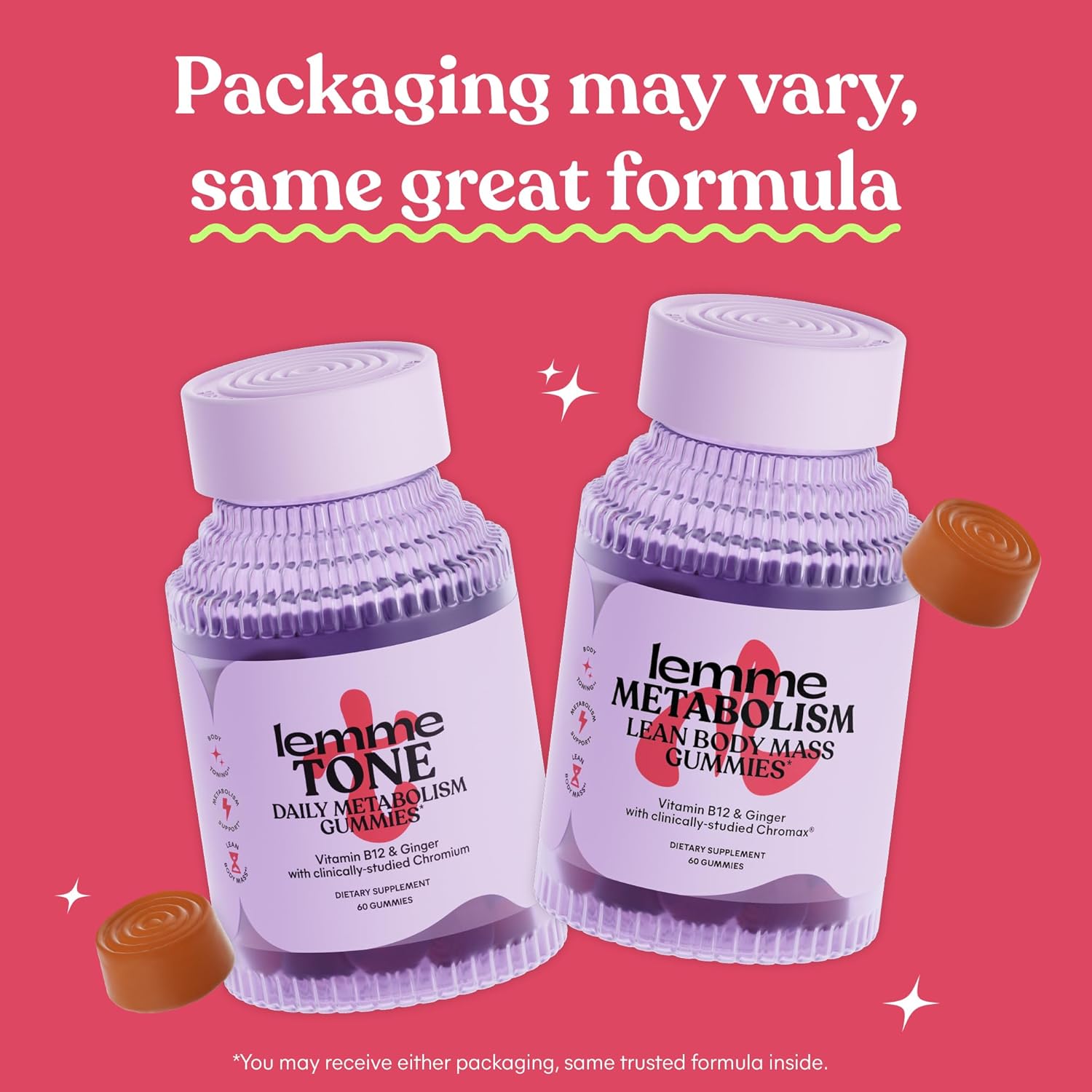 Lemme Tone Metabolism Gummies deliver a powerful blend of metabolism-supporting ingredients in a delicious watermelon apple flavor. Created by Kourtney Kardashian’s wellness brand Lemme, these gummies are formulated with clinically-studied ingredients to help you maintain energy levels, support lean body mass, and promote healthy metabolism as part of your daily wellness routine.